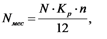 где N – годовая производственная программа ремонта агрегатов или автомобилей, шт.; Кр – коэффициент ремонта; n – число одноименных деталей на автомобиле, шт.; 12 – число месяцев году.