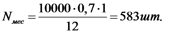 В условиях серийного ремонтного производства (по опыту ремонтных предприятий) размер партии принимают равный месячной или квартальной потребности в ремонтируемых или изготавливаемых деталях. Месячная программа восстанавливаемых по маршруту деталей Nмес, определяется по формуле: