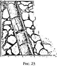 Значение открытия Левета может выйти далеко за рамки его теории. Поскольку каменные стелы и резьба по камню встречаются на всей территории Месоамерики и являются произведением местных мастеров, нет никакой необходимости обращаться к высокотехнологичному инструменту, чтобы объяснить работы из камня. С другой стороны, этот инструмент может пролить свет на другую загадку Толлана. Исследовав внутренность пирамиды после удаления слоя земли из траншеи, археологи обнаружили, что внешняя пирамида была построена вокруг более старой ступенчатой пирамиды (полностью скрывая ее), стены которой располагались на расстоянии восьми футов от внешних. Кроме того, обнаружились остатки вертикальных стен, что предполагало наличие помещений и проходов внутри старой пирамиды. Была также сделана еще одна удивительная находка — каменная труба, выполненная из точно подогнанных цилиндрических секций (рис. 23) с внутренним диаметром около восемнадцати дюймов. Длинная труба была параллельна наклонной грани пирамиды и пронизывала ее насквозь, на всю высоту. Акоста и его сотрудники предположили, что труба служила для отвода дождевой воды, однако этой цели можно было достичь, во-первых, без применения такой сложной внутренней конструкции, а во-вторых, при помощи простых глиняных труб, а не тщательно вырезанных из камня и подогнанных цилиндрических секций. Расположение и наклон необычного — можно даже сказать, уникального — трубопровода явно свидетельствуют, что он был частью первоначального проекта пирамиды и имел отношение к функции всего сооружения. Тот факт, что руины соседних зданий, имевших множество комнат и несколько этажей, предполагают какое-то производство, а также то, что к ним по каналам подводилась вода из реки Тула, дает основание предположить, что в глубокой древности в этом месте, так же как и в Теотиуакане, проходил некий процесс очистки и рафинирования минералов. Поэтому при взгляде на загадочный инструмент в руках статуй возникает следующее предположение: может быть, он использовался вовсе не для резьбы по камню, а для резки скальных пород при добыче руды? Другими словами, не является ли он высокотехнологичным инструментом для горных работ? И не искали ли в этих местах золото? Если более тысячи лет назад «Атланты» из центральных районов Мексики обладали высокотехнологичным инструментом, то возникает естественный вопрос: кто они такие? Судя по чертам лица, они явно не индейцы Месоамерики. Возможно, это даже не простые смертные, а «боги». На это указывает гигантский размер фигур — на стоящих рядом квадратных колоннах правители толтеков были изображены в натуральную величину. Сам факт, что в доисторические времена колоссальные изваяния были аккуратно разобраны и опущены внутрь пирамиды, предполагает, что их считали святыней. Все это подтверждает процитированные выше свидетельства Сахагуна, который говорил, что толтеки, оставляя город, закопали «множество вещей» и что даже его современники извлекали из-под земли предметы, вызывавшие восхищение своей красотой и искусным исполнением. Археологи убеждены, что четыре Атланта стояли на вершине Пирамиды Кетцалькоатля и держали крышу Небесного Балдахина. В египетской мифологии эту обязанность исполняли четверо сыновей Гора, которые поддерживали небо с четырех сторон — на севе
