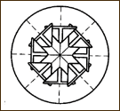 Все «носики» второго ряда смотрят к центру и удалены от него на одинаковое расстояние.