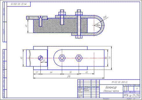 Лист 2-2 На листе чертежной бумаги формата А3 выполнить упрощенные резьбовые соединения: болтовое, шпилечное и винтовое. Чертеж балансира выполнять по размерам образца. Стандартные изделия применить согласно своему варианту. Вариант задания выбирается по таблице 4 по последней цифре шифра.