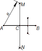 | · Построение перпендикуляра к середине отрезка АВ (рис. 2.4). Прямая MN на рис. 2.4 и будет перпендикуляром, проходящем через середину отрезка АВ.