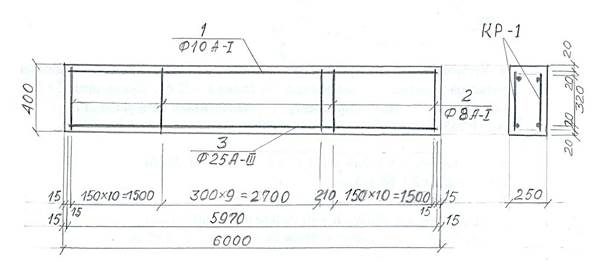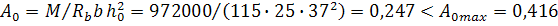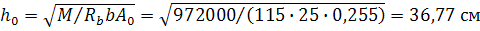 4. Устанавливаем размеры поперечного сечения балки. Для этого одним из размеров задаемся. Принимаем ширину балки b = 25 см. Принимаем