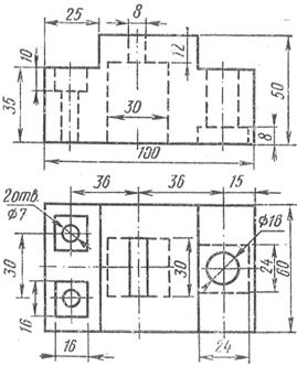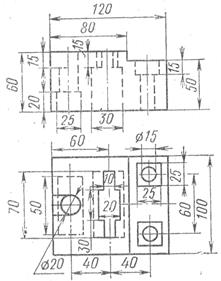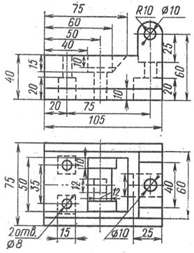 Задание: вычертить комплексный чертёж модели, построить сложные разрезы, нанести размеры и построить аксонометрическую проекцию. Задание выполняется на листе формата А3. Варианты заданий даны в таблице 8.