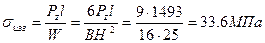 где l - вылет резца из резцедержателя, м; вылет резца принимаем l = 1,5 H (H- высота державки резца, H = 25 мм); W— осевой момент сопротивления или момент сопротивления при изгибе, [ Тогда напряжение в теле резца определяется по формуле:
