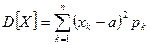 2) Дисперсия Определение: математическое ожидание квадрата отклонения случайной величины от своего математического ожидания называется дисперсией. Т.о Дисперсия – константа, имеющая размерность квадрата случай величины. Дисперсия характеризует степень разброса возможных значений случайной величины относительно ее центра, т.е. МО.