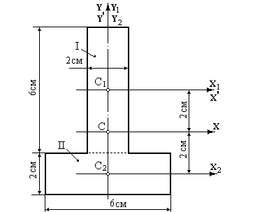 Момент інерції перерізу щодо якої-небудь осі можна уявити у вигляді добутку площі фігури на квадрат деякої величини, названої радіусом інерції: Розглянемо приклади обчислення осьових моментів інерції для складених перерізів. Приклад 5. Обчислимо головні центральні моменти інерції Т - образного перерізу.