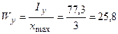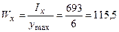 Рис.5.9. 1. Переріз складається з трьох частин, має дві осі симетрії, тому осі симетрії є центральними осями та головними осями інерції. 2. Осьові моменти інерції перерізу визначаються аналогічно попередньому прикладу: 3. Осьові моменти опору: