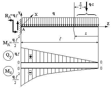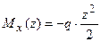 Показуємо поточний переріз з координатою , межі її зміни, записуємо функції і . При обліку рівномірно розподіленого навантаження q використовуємо такий спосіб: заміняємо його зосередженою силою, прикладеною у середині ділянки (плече зосередженої сили 0,5z).