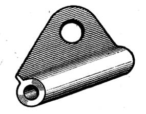 Изготовлен из металлической оболочки, концы которой опаяны, а торцы отшлифованы. Шланг прикреплен одним концом к правой лямке подвесной системы (пропущен через воротник), другим ─ к левой. Длина шланга 750 мм. Серьга для выдергивания шпильки звена ручного раскрытия ранца основного парашюта прибором ППК-У-240АД (рис. 69). Изготовлена из металла Д16Т и крепится к петле прибора.