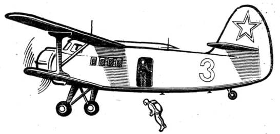 7. Высотомер выдерживает ударные перегрузки с частотой от 40 до 100 ударов в минуту, причем общее количество ударов не должно превышать 100 ударов с перегрузкой 6g, 10 000 ударов с перегрузкой 4g. 8. Смещение нуля шкалы высот относительно верхнего индекса не должно превышать +3 деления по шкале. 9. Запаздывание показаний высотомера при снижении со скоростью до 5 м/с не должно превышать 0,1 с. 10. Момент поворота крышки допускается в пределах 2─7 кг-см. 11. Масса высотомера не превышает 0,08 кг. 12. Габаритные размеры высотомера, мм: длина ─ 55+1; ширина ─ 55+1; высота ─ 24,5. 13. Изготовитель гарантирует безотказную работу высотомера в количестве 1500 срабатываний (прыжков) в течение пяти лет, в число которых входит не менее трех лет непосредственной эксплуатации, а остальное время отводится на транспортировку и хранение на складах. Изменение сроков гарантии должно отражаться в паспорте высотомера. Глава 5. САМОЛЕТ Ан-2 Среди летательных аппаратов (самолетов, вертолетов), с которых выполняются учебные тренировочные прыжки, самолет Ан-2 (рис. 93) является наиболее распространенным, с него в настоящее время выполняется наибольшее количество прыжков подобного рода.