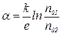 где k = 1,38 . 10-23 Дж/К – константа Больцмана; е = 1,6 . 10-19 Кл – заряд электрона; n01 и n02 – числа электронов в единице объема каждого проводника. Направление тока при n01> n02 указано на(рис.6.1). Из формулы (6.1) можно выразить α:
