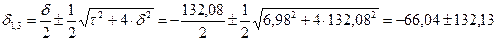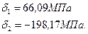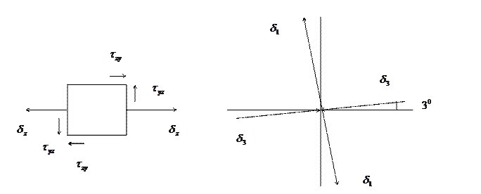 4. Для точки перехода стенки в полку определяем величины главных напряжений, положения главных площадок.