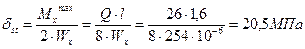 Если динамическое напряжение окажется больше или намного меньше допускаемого [δ]=100МПа, то необходимо соответственно изменить номер двутаврового профиля, подтвердив правильность выбора нового номера повторным расчётом.