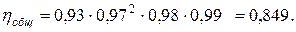 где hц – КПД цепной передачи, hц = 0,93; ([1], с.7) hзц – КПД зубчатой цилиндрической передачи, hзц = 0,97; ([1], с.7) hм – КПД муфты, hм = 0,98; ([1], с.7) hоп – КПД опор приводного вала, hоп = 0,99. ([1], с.7)