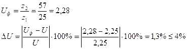 2.1.3. Фактическое передаточное число Uф и его отклонение ∆U от заданного: