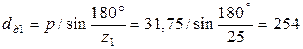 2.1.9. Диаметры звездочек: диаметр делительной окружности