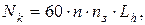 Ресурс Nk передачи в числах циклов перемены напряжений при частоте вращения n и времени работы Lh
