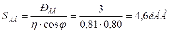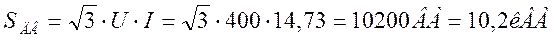 Пример. Электродвигатель 7,5 кВт, трехфазного напряжения 3 х 400 В потребляет ток 14,73 А