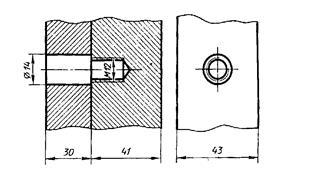 Исходные данные. Заданы две пары деталей с определённой толщиной и диаметрами отверстий в них. В третьей паре деталей одна из них имеет наружную резьбу, другая – внутреннюю. Изображения резьбовых соединений всех трёх пар деталей выполняются для следующих условий: - применения метрической резьбы; - диаметр отверстий в деталях на 5% больше диаметров соединяющих болта или шпильки; - упрощённого вычерчивания головки болта и гаек по эмпирическим соотношениям в зависимости от заданных диаметров болта или шпильки; - шпилька ввинчивается в отверстие на всю длину резьбы ввинчиваемого конца; - в третьей паре соединяемых деталей одну из них в другую ввёртывать не полностью, а лишь на 10¸15 мм, чтобы наглядно показать особенности вычерчивания резьбы двух соединяемых деталей.