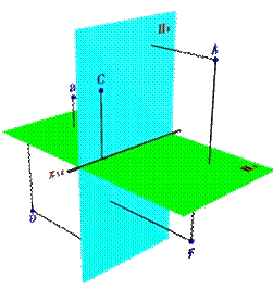 По эпюру измеряем расстояния до проекций точки D, получаем D(87, -80, -70) – точка D расположена в третьей четверти.