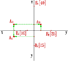 По эпюру измеряем расстояния до проекций точки В, получаем В(50, -67, 27) – точка В расположена во второй четверти.