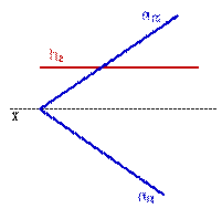 Чтобы изменить способ задания плоскости на эпюре (от следов перейти к двум пересекающимся прямым h и f) проведем в плоскости, заданной следами, горизонталь и фронталь прямой h. Горизонтальная проекция h1 - горизонталь - параллельна горизонтальному следу плоскости, а фронтальная проекция h2 - фронталь - фронтальному следу плоскости.