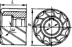 тип2 – фрезы торцовые насадные с крупным зубом. Фрезы с крупным зубом могут быть изготовлены с неравномерным окружным шагом зубьев. Угол склона стружечных канавок 25–30° для фрез типа 1; 35–40° для фрез типа 2