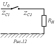 при этом расчетная схема замещения для момента прихода волны к стыку линий имеет вид на рис. 7,б. Так, если падающая волна напряжения имеет прямоугольную форму и величину