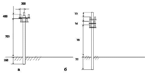 а) проміжна опора типу П-0,4; б) анкерна опора типу А-0,4 Рисунок 6.2 – Залізобетонні опори ПЛ 0,38 кВ