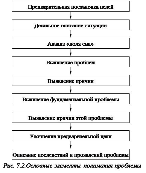 При первом столкновении с проблемой вполне естественной является потребность знать и понимать ее, иметь контроль над довольно неясной и неопределенной ситуацией. Здесь проявляется тенденция локализации или упрощения представления ситуации из-за поспешных определений. Концентрируясь на общепризнанной потребности определения проблемы ясным и точным способом, мы можем часто упустить из виду более основополагающую проблему. Анализируемая проблема может быть лишь формой проявления другой фундаментальной проблемы. И именно на выявление этой фундаментальной проблемы и необходимо направить усилия. Другая крайность – усложненное представление проблемы. Причиной этого может быть низкая квалификация ЛПР, наличие большого числа регламентирующих ограничений. Ощущение проблемы и ее формулировка – это творческий процесс. По крайней мере, он должен быть таким. Это требует от ЛПР образного и исследовательского мышления. Необходимо дать ответы на множество вопросов: что, если..., и (или), почему? Первостепенное значение имеет способность ЛПР выдвигать новые идеи, гипотезы или хорошо организовать выдвижение идей другими работниками организации. Не менее сложно обеспечить процесс отклонения неплодотворных идей. При этом требуется, с одной стороны, сконцентрироваться на решении конкретной проблемы. С другой стороны, очень важно не упустить существенных возможностей из–за чрезмерного ограничения, упрощения проблемы. Определение проблем является творческим процессом. Менеджеры, которые не способны подойти к проблеме творчески, могут: · не распознать истинный характер некоторых проблем; · оказаться не способными своевременно предвидеть вероятные последствия. В такой ситуации ответственные за организацию принятия решения и действия по его реализации стоят перед задачей: · концентрации творческой деятельности на распознавании и формулировке проблем; · усиления аналитического характера процесса определения проблем и их перевода на организационный язык, чтобы решения могли быть приняты; · определения объема ресурсов, которые целесообразно направить на реализацию решения. При решении долговременных и стратегических проблем целесообразно введение специалиста по управленческим решениям в группы, определяющие проблемы. Потребность в связи между творческим и аналитическим аспектами в принятии операционных решений возникает очень часто, поэтому эти два навыка должны быть развиты в одном и том же лице или группе, которые занимаются разработкой решений. Четкая формулировка проблемы при появлении дискомфорта, нахождение фундаментальной проблемы за проблемой очевидной – самый важный момент в фазе определения проблемы. Понимание проблемы включает: · Определение существующего положения вещей, имеющейся ситуации. Даже о самых очевидных и общепризнанных установках и процедурах в организации необходимо задавать вопрос «почему?». · Способность видеть более широкую картину, чем очевидное и непосредственно воспринимаемое. Понимание проблем – очень контекстный процесс, который включает наблюдение как «леса», так и «отдельных деревьев». · Готовность изучать будущее. Определение проблем прежде, чем они станут кризисами, часто означает, что они могут быть рассмотрены и решены без существенных негативных последствий для орг