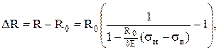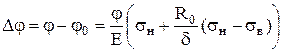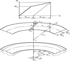 Отношение При величине По закону Гука после снятия изгибающих нагрузок заготовка стремится распрямиться в результате исчезновения упругой составляющей деформации. Это явление в технологии называется пружинением. В результате пружинения каждое сечение повернется на некоторый угол Δφ = φ0 – φ и радиус увеличится на величину ΔR = R – R0. Величины Δφ и ΔR носят название параметров пружинения и рассчитываются по формулам М.Н. Горбунова: