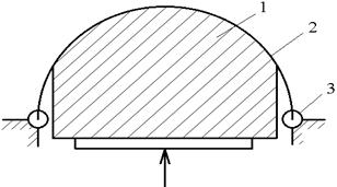 Рис. 5. Простая обтяжка: 1 – обтяжной пуансон, 2 – заготовка, 3 – зажимы