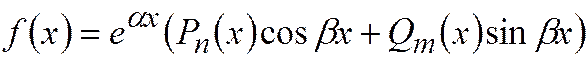 Пример: Найти частное решение для уравнения вида . Варианты функции заданы в таблице. Обосновать выбор формы частного решения и вычислить непределенные коэффициенты.