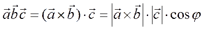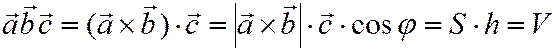 Модуль смешанного произведения равен объему параллелепипеда, построенного на этих векторах, как на ребрах.