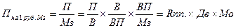 Где: - Rпр. – рентабельность продаж (отношение прибыли к выручке); - Дв – доля выручки в общем объеме выпуска продукции; - Мо – материалоотдача. Материалоотдача (Мо), характеризует выход продукции на один рубль материальных затрат, т.е. сколько произведено продукции на каждый рубль потребленных материальных ресурсов. Рассчитывается как отношение объема выпуска продукции в стоимостных или натуральных показателях (Vпр.) к стоимости потребленных материальных ресурсов (Мз)