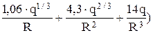 Избыточное давление (в Па) на фронте ударной волны в воздухе при взрыве наземного заряда ВВ массой q рассчитывают по формуле