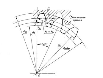 (Расстояние между разноименными боковыми поверхностями зубьев. Общая нормаль является одновременно касательной к основной окружности)