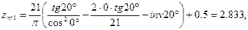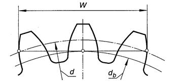 При a=20°, b=0° и исходном контуре по ГОСТ 13755-81 возможен упрощенный расчет по формуле: W1=mk, где k=7.674 – коэффициент, определяемый по таблице (см. раздел 5 «Выполнение чертежей деталей машин»).