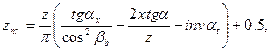 | Угол профиля в точке на окружности диаметра dx=d+2xm