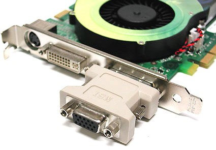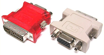 Новые графические карты обычно оснащаются двумя выходами DVI. Но с помощью переходника DVI-VGA можно легко изменить интерфейс (справа на иллюстрации).