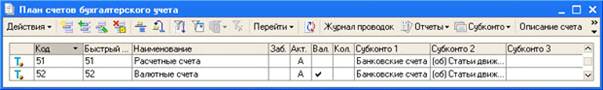 Рис. 7.1. План счетов: Счет 51 "Расчетные счета" По дебету счета отражается поступление денежных средств на расчетные счета, по кредиту - списание. Учет денежных средств организован в двух аналитических разрезах: в разрезе банковских счетов (их описания хранятся в справочнике Банковские счета) и в разрезе статей движения денежных средств (справочник Статьи движения денежных средств). Основанием для записей по счету 51 является выписка банка. Обычно перед тем, как переносить данные из выписки в учетную систему, на полях выписки напротив суммы операции, а так же в оправдательных документах, которые прилагаются к выписке, проставляют корреспонденции счетов или коды счетов, корреспондирующих со счетом 51. В документах, прилагаемых к выписке, указываются их порядковые номера в выписке. После того, как документ отражен в учетной системе, он гасится штампом с надписью "Погашено". В 1С:Бухгалтерии предусмотрено несколько документов, которыми оформляются операции с денежными средствами на банковском счете. Так, перечисление денежных средств с расчетного счета оформляют исходящим платежным поручением.