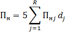 где j — тип транспортного средства; Р — число типов транспортных средств на предприятии; П н j — плата за допустимые выбросы загрязняющих веществ j -го типа транспортного средства, руб.; dj — доля транспортных средств j -го типа, не соответствующих требованиям стандартов, определяется как соотношение количества транспортных средств, не соответствующих требованиям стандартов, к общему количеству транспортных средств. Общая плата за выбросы загрязняющих веществ от передвижных источников определяется по формуле