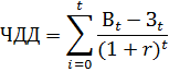 Чем больше годовой экономический эффект Э г, тем выше экономическая эффективность мероприятия. Затраты З на реализацию мероприятия рассчитываются по формуле З=ЕнК-С где К— капитальные вложения в мероприятие, руб. (затраты на приобретение средств защиты, модернизацию оборудования, создание или улучшение систем вентиляции, очистки и кондиционирования воздуха и т. п.); Е н — безразмерный нормативный коэффициент эффективности капитальных вложений (в целом по промышленности Е =0,12, для некоторых видов экобиозащитных мероприятий может равняться 0,08 и даже 0,03— для лесовосстановительных работ); Общая (абсолютная) экономическая эффективность Э о мероприятия определяется выражением Э о = В/3. Мероприятие считается экономически эффективным, если Э о ≥ 1. Чем выше Э о, тем эффективнее мероприятие. Эффективность капитальных вложений Э к в мероприятия по охране труда оценивают по формуле: Эк=(В-С)/К Если Э к ≥ Е н, то капитальные вложения следует считать эффективными. Срок окупаемости капитальных вложений Т= 1/Э к, лет. Если Экономический эффект мероприятия может быть получен только после его реализации и даже не в первый год. Затраты предприятие несет вначале, а эффект получает позднее. При наличии в стране инфляции сопоставлять вложенные в проект финансовые средства и полученный позднее эффект нельзя, так как современные деньги могут оказаться не сопоставимы по покупательной способности с «будущими». Поэтому для оценки эффективности многолетних проектов мероприятий по обеспечению безопасности жизнедеятельности необходимо учитывать фактор дисконтирования, позволяющий привести «будущие» деньги к современному моменту. Для учета фактора времени при оценке эффективности мероприятий применяют такой показатель, как чистый дисконтированный доход (ЧДД):