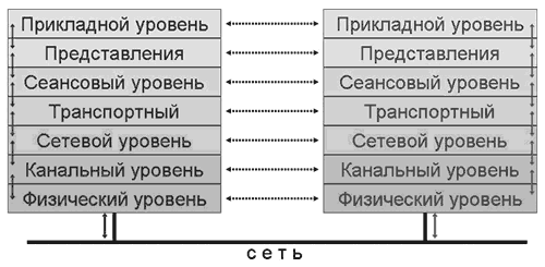 Рисунок 10.1. Семиуровневая модель взаимодействия между компьютерными системами