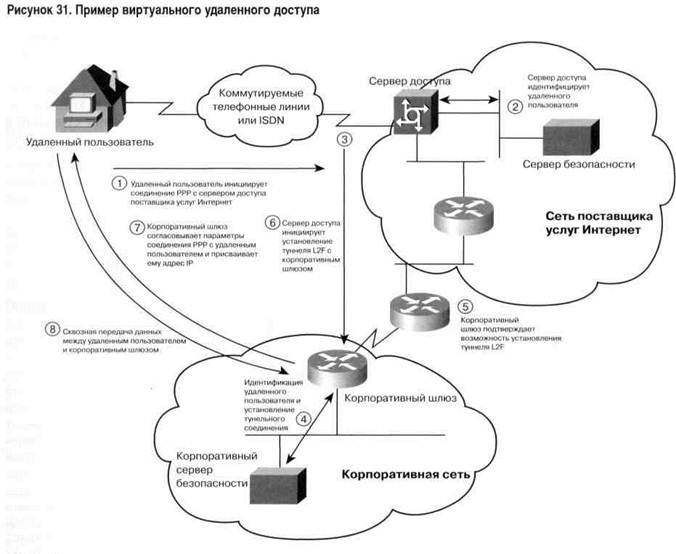 L2TP РРТР L2F VPN Виртуальные частные сети с удаленным доступом (Virtual Private Dialup Networks — VPDN) позволяют крупным компаниям расширять свои частные сети, используя линии удаленной связи. Новые технологии снимают проблему высокой стоимости междугородней или международной связи и проблему низкой защищенности общих телефонных линий и каналов Интернет, через которые удаленный пользователь получает доступ к корпоративной сети. Новые технологии предоставляют удаленным офисам и пользователям безопасный доступ к инфраструктуре предприятия через местное подключение к сети Интернет. В настоящее время для этого используются три протокола: протокол эстафетной передачи на втором уровне (Layer 2 Forwarding — L2F), сквозной туннельный протокол (Point-to-Point Tunneling Protocol — РРТР) и туннельный протокол второго уровня (Layer 2 Tunneling Protocol — L2TP). Протокол эстафетной передачи на втором уровне (Layer 2 Forwarding — L2F) был разработан компанией Cisco Systems. Он обеспечивает туннелирование протоколов канального уровня (то есть фреймов High-Level Data Link Control [HDLC], async HDLC или Serial Line Internet Protocol [SLIP]) с использованием протоколов более высокого уровня, например, IP. С помощью таких туннелей можно разделить местоположение сервера удаленного доступа, к которому подключается пользователь, используя местные коммутируемые линии связи, и точки, где происходит непосредственная обработка протокола удаленного доступа (SLIP, PPP), и пользователь получает доступ в сеть. Эти туннели дают возможность использовать приложения, требующие удаленного доступа с частными адресами IP, IPX и AppleTalk через протокол SLIP/PPP по существующей инфраструктуре Интернет. Поддержка таких многопротокольных приложений виртуального удаленного доступа очень выгодна конечным пользователям и независимым поставщикам услуг, поскольку позволяет разделить на всех расходы на средства доступа и базовую инфраструктуру и дает возможность осуществлять доступ через местные линии связи. Кроме того, такой подход защищает инвестиции, сделанные в существующие приложения, работающие не по протоколу IP, предоставляя защищенный доступ к ним и в то же время поддерживая инфраструктуру доступа к Интернет. Сквозной туннельный протокол Point-to-Point Tunneling Protocol (РРТР) создан корпорацией Microsoft. Он никак не меняет протокол РРР, но предоставляет для него новое транспортное средство. В рамках этого протокола определяется архитектура клиент/сервер, предназначенная для разделения функций, которые существуют в текущих NAS, и для поддержки виртуальных частных сетей (VPN). Сервер сети РРТР (PNS) должен работать под управлением операционной системы общего назначения, а клиент, который называется концентратором доступа к РРТР (РАС), работает на платформе удаленного доступа. РРТР определяет протокол управления вызовами, который позволяет серверу управлять удаленным коммутируемым доступом через телефонные сети общего пользования (PSTN) или цифровые каналы ISDN или инициализировать исходящие коммутируемые соединения. РРТР использует механизм общей маршрутной инкапсуляции (GRE) для передачи пакетов РРР, обеспечивая при этом контроль потоков и сетевых заторов. Безопасность данных в РРТР может обеспечиваться при помощи протокола IPSec. Протоколы L2F и РРТР имеют сходную функциональность. Компании Cisco и Microsoft согласились вместе (в рамках IETF) разработать единый стандартный протокол, который 