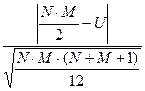 Данный критерий оперирует не с абсолютными значениями элементов двух выборок, а с результатами их парных сравнений. Например, существенно, что учащийся Петров решил больше задач, чем учащийся Иванов, а на сколько больше – не важно. Возьмем две выборки3: { xi } i = 1…N и { yj } j=1…M и для каждого элемента первой4 выборки xi, i = 1…N, определим число ai элементов второй выборки, которые превосходят его по своему значению (то есть число таких yj, что yj > xi), а также число bi элементов второй выборки, которые по своему значению равны ему (то есть число таких yj, что yj = xi). Сумма
