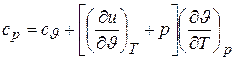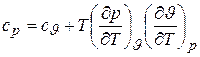 Найденное выражение, связывающее теплоемкости ср и сJ, играет весьма важную роль в теоретических и экспериментальных исследованиях реальных газов. Путем несложных преобразований ему можно придать более удобную форму, связав ср и сJ через термические коэффициенты. Так, разделив на dJ все члены уравнения