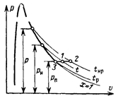 где р – суммарное давление влажного воздуха. Если ненасыщенный воздух, состояние пара в котором определяется точкой 1 (рис. 8.4), нагревать при постоянном давлении, то давление насыщения рн будет увеличиваться, а, поскольку парциальное давление пара Наоборот, если этот воздух охлаждать при постоянном давлении, то рн будет уменьшаться, соответственно относительная влажность φ будет увеличиваться. При значении рн=рп получаем φ =1, т. е. воздух станет насыщенным. Дальнейшее охлаждение будет вызывать пересыщение и начнется конденсация пара, при которой влага будет выделяться из смеси в виде росы. В связи с этим температура, при которой у влажного воздуха с заданным парциальным давлением пара φ =1, называется температурой точки росы и обозначается через tр. Очевидно, что температура точки росы тем выше, чем больше парциальное давление пара во влажном воздухе.