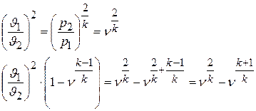 Найдем зависимость между величиной ωкр и параметрами газа в выходном сечении ркр и υкр, выразив через них произведение При адиабатном истечении